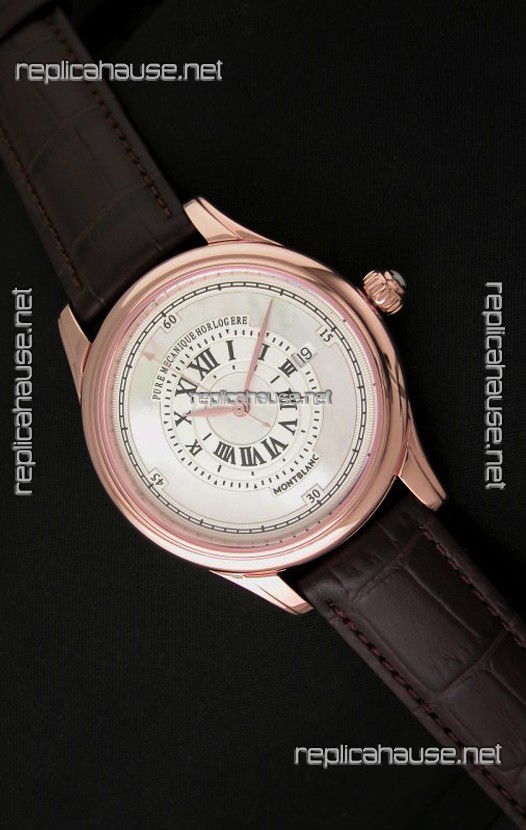 Montblanc Pure Mechanique Horlogere Swiss Replica Rose Gold Watch in Mop White Dial