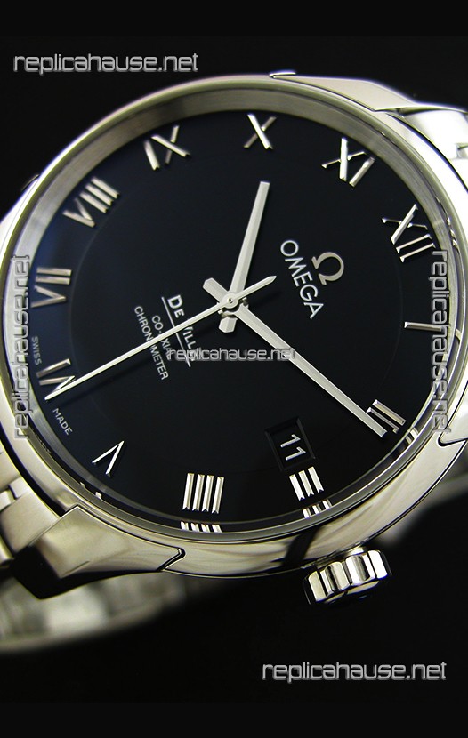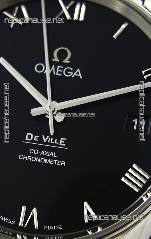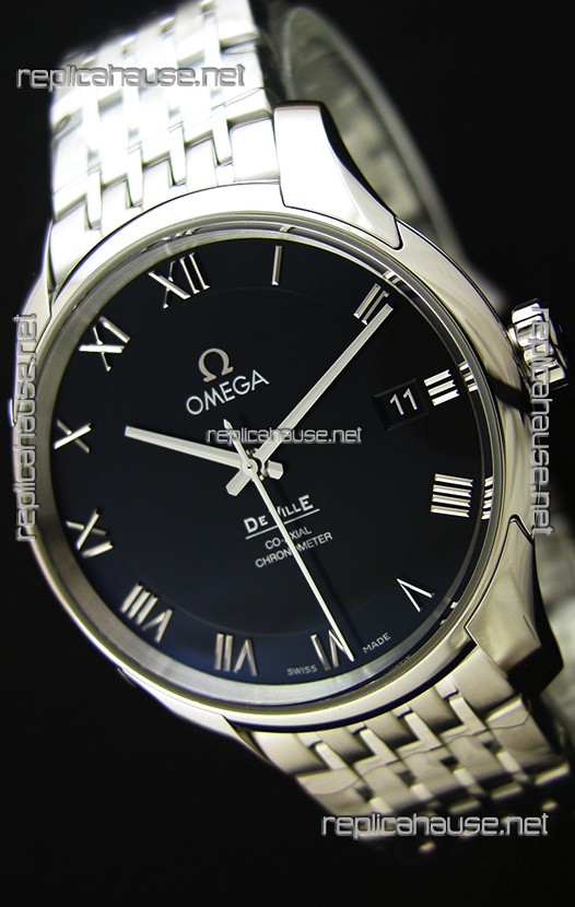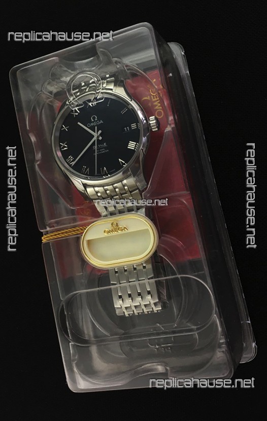 Omega De-Ville Annual Calendar Steel Strap Swiss Replica Watch 1:1 Mirror Edition in Black Dial