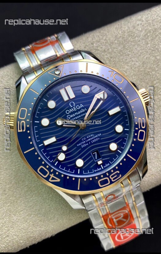Omega Seamaster 300M Co-Axial Master Chronometer Blue Dial Two Tone Casing 1:1 Mirror Replica
