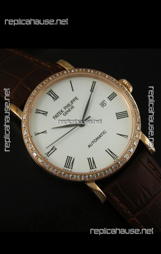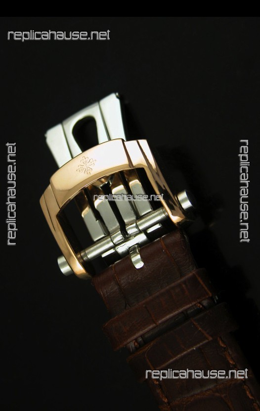 Patek Philippe Calatrava 5120 Swiss Replica Watch in Pink Gold Casing - Roman Hours
