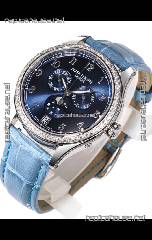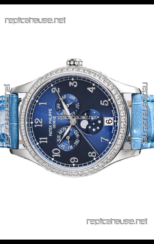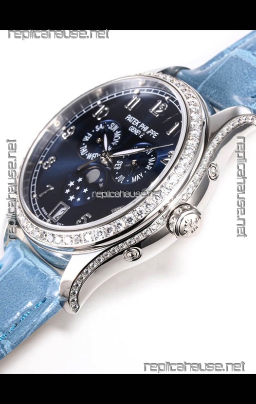 Patek Philippe Complications 4948G Annual Calendar Moonphase Blue Dial White Gold Swiss Replica