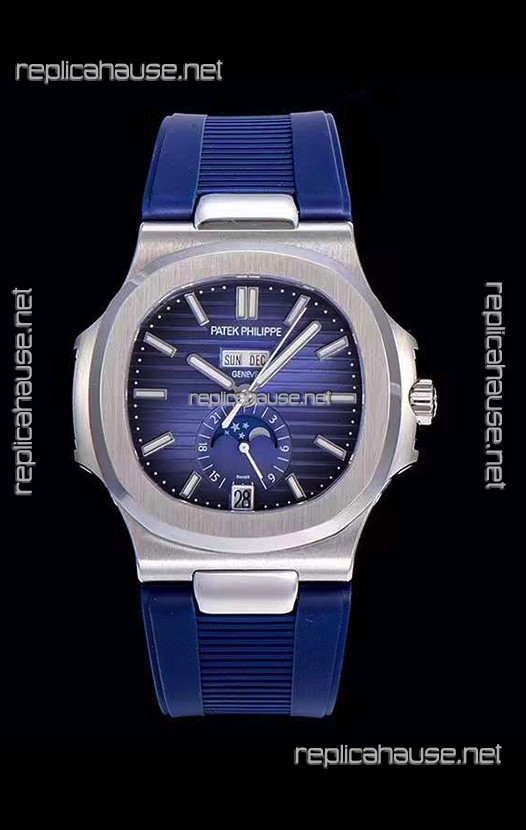 Patek Philippe Nautilus 5726A 1:1 Mirror Swiss Watch Blue Dial Rubber Strap