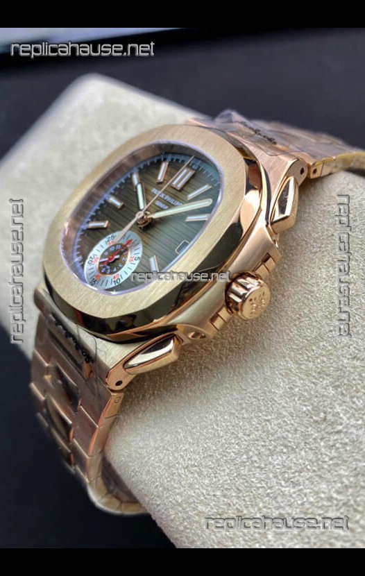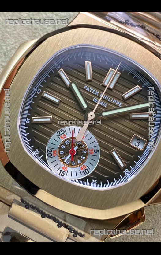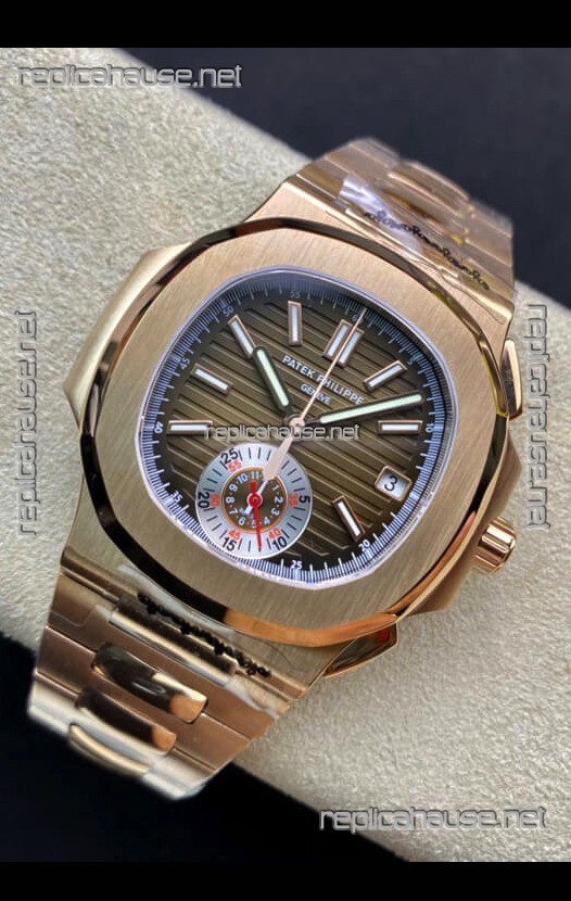 Patek Philippe Nautilus 5980/R Chronograph Rose Gold on 904L Steel Case in Brown Dial - 1:1 Mirror Replica