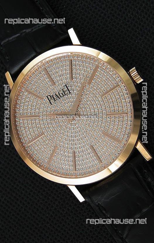 Piaget Altiplano G0A36128 Paved Diam Dial Swiss Quartz Replica Watch in Pink Gold Case