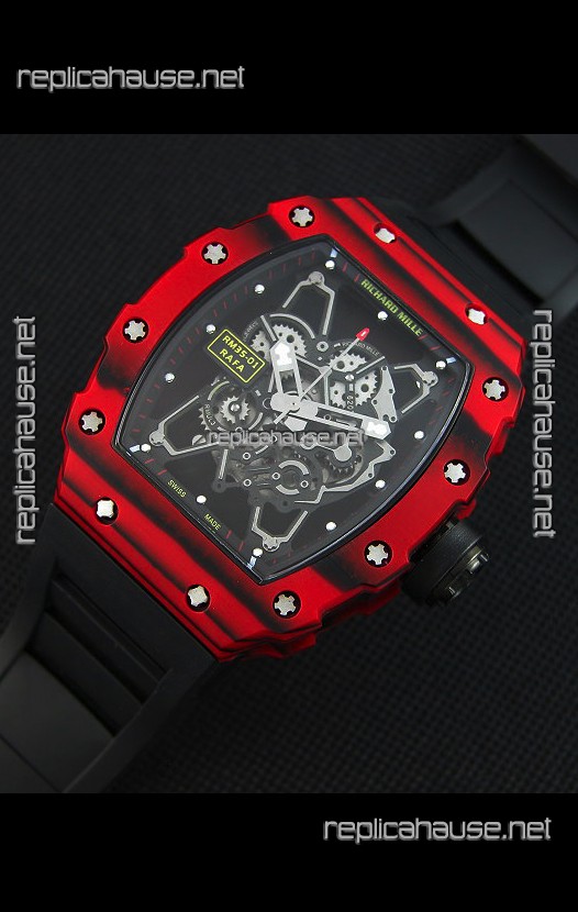 Richard Mille RM35-01 One Piece Red Forged Carbon Case Watch in Black Strap
