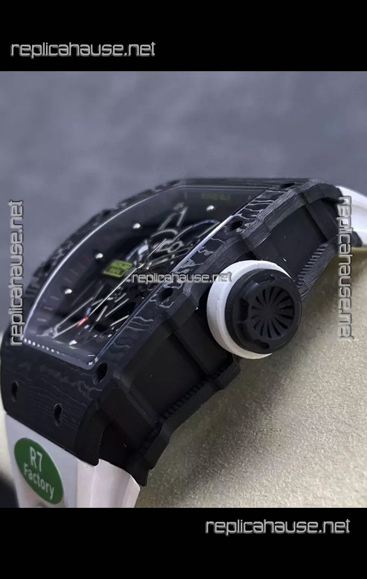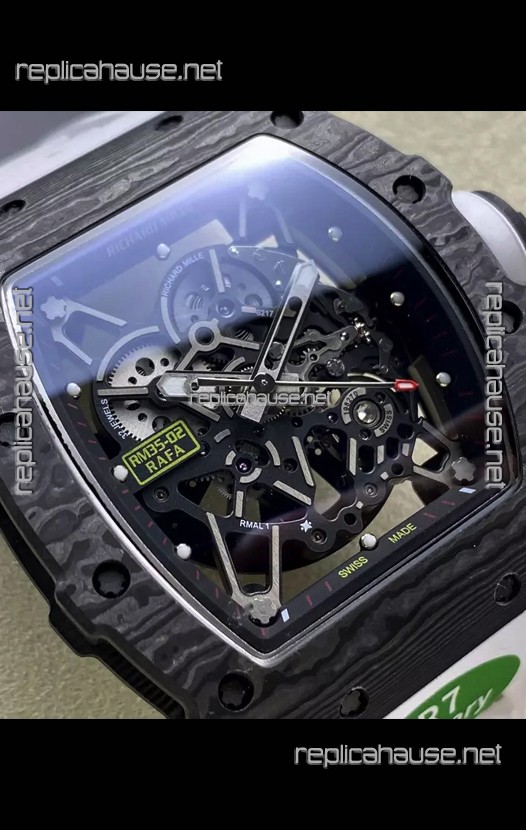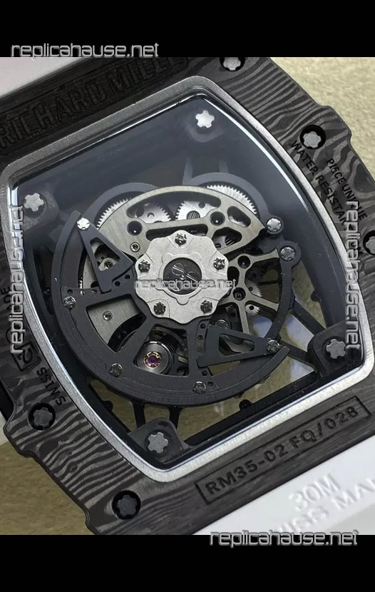 Richard Mille RM35-02 Rafael Nadal Black Carbon White Strap with Genuine Tourbillon Super Clone Watch