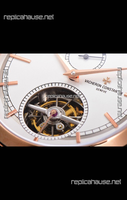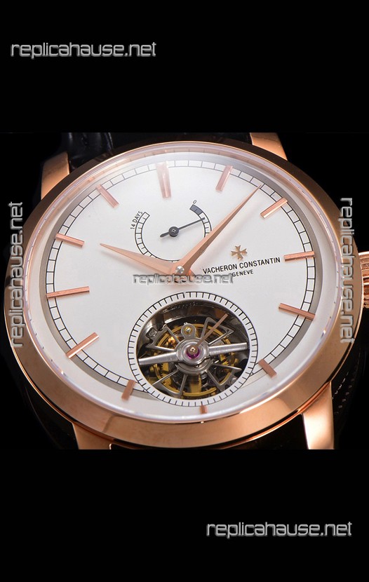 Vacheron Constantin Traditionelle 14-Day Tourbillon White Dial Rose Gold 1:1 Mirror Replica Watch