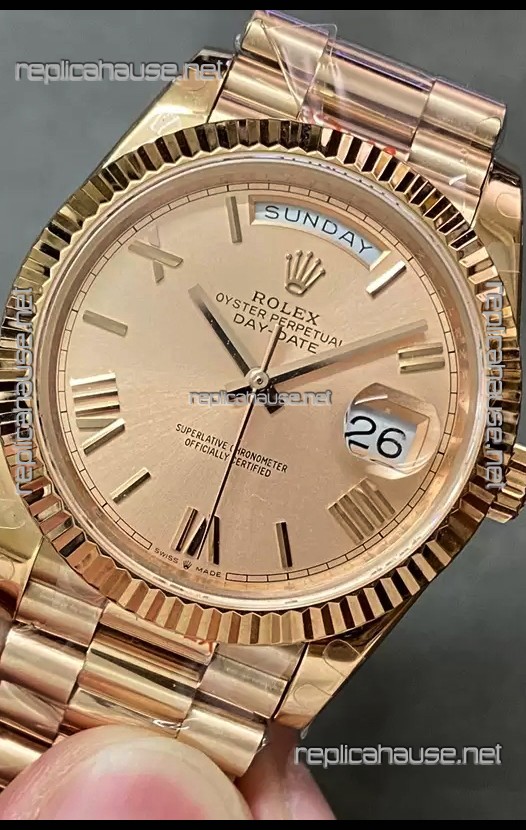 Rolex Day Date 40MM 228235 Rose Gold in Gold Roman Dial 1:1 Mirror Replica Watch