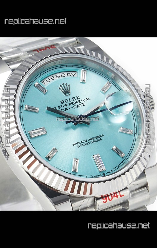 Rolex Day Date 904L Stainless Steel Tiffany Blue Diamonds Dial Watch 40MM - 1:1 Mirror Quality