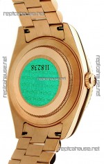Other Feartures: 18K Rose Gold plated Fluted Bezel, 2.5 Magnification Lens on Date Window, Laser Etched Rolex Crown at 6 O'Clock, Green Hologram Sticker behind the watch, One Piece Screw down crown with Rolex Logo Engraved on the Tip of the Crown and Genuine Sapphire Crystal Glass exactly like the Authentics