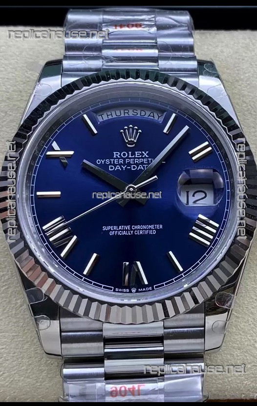 Rolex Day Date Presidential Stainless Steel Navy Blue Dial Watch 40MM - 1:1 Mirror Quality