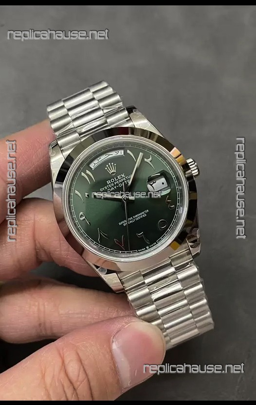 Rolex Day Date Presidential Stainless Steel Olive Green Arab Dial Watch 40MM - 1:1 Mirror Quality