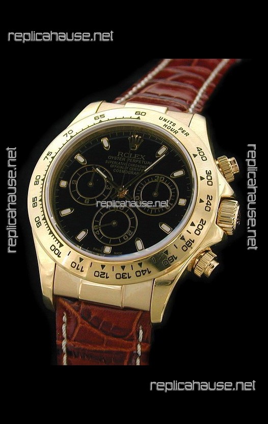 Rolex Daytona Cosmograph Swiss Replica Gold Watch in Black Dial