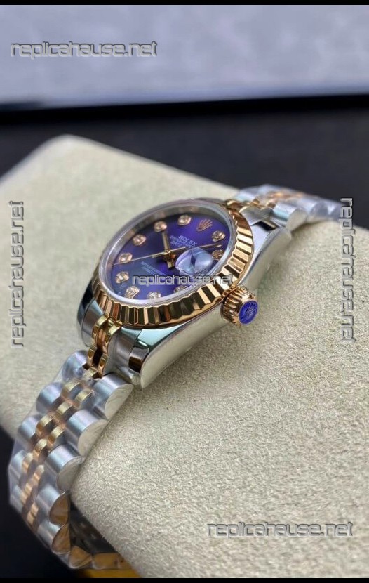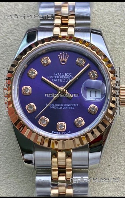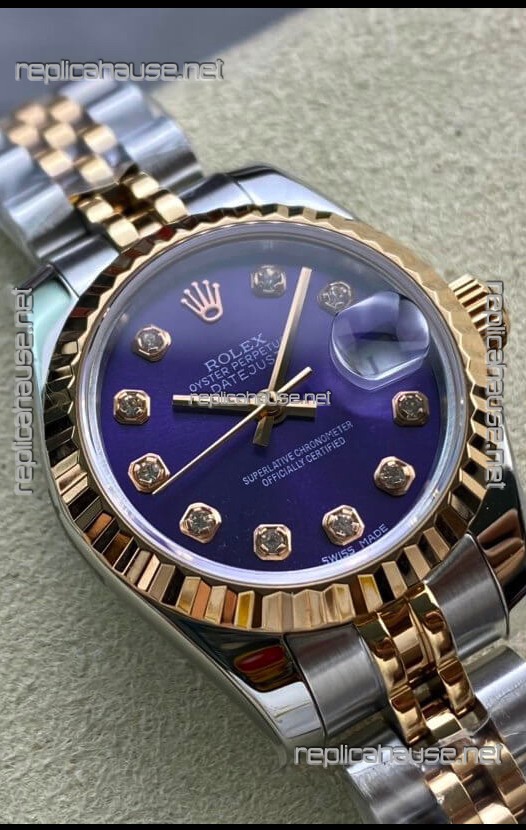 Rolex Datejust 28MM Swiss Replica in 904L Rose Gold Two Tone Case in Purple Dial - 1:1 Mirror Replica