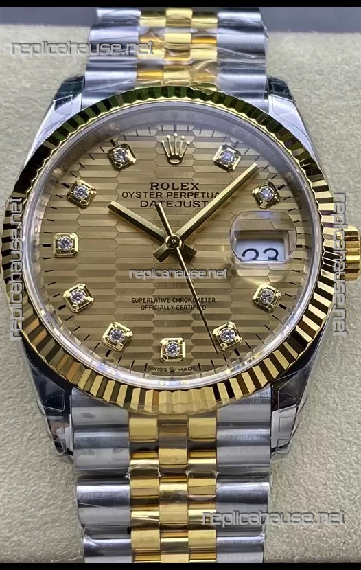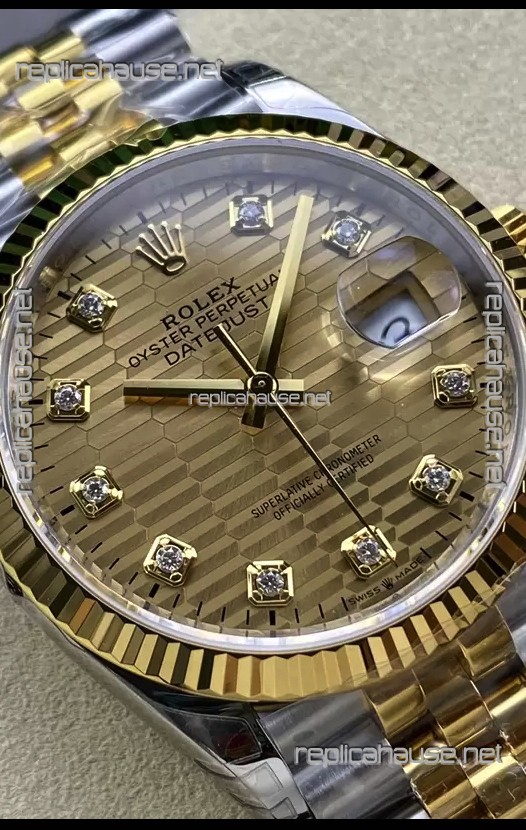 Rolex Datejust Cal.3235 Movement 1:1 Mirror Replica 904L Steel 36MM - Gold Fluted Motif Dial