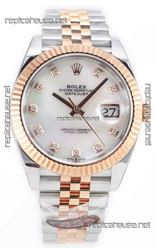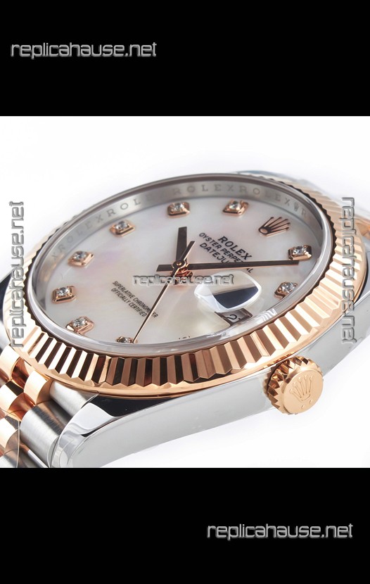 Rolex Datejust M126333 41MM ETA3235 72 Hours Power Pearl Dial Jubilee 1:1 Mirror Replica Rose Gold 904L Steel