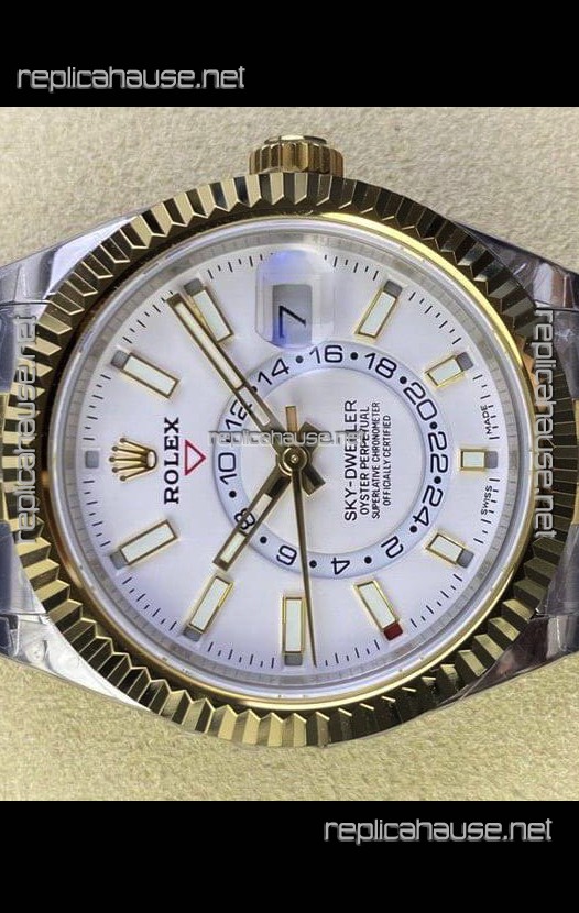 Rolex Sky-Dweller REF# M336933 White Dial Watch in Yellow Gold 904L Steel Case 1:1 Mirror Replica