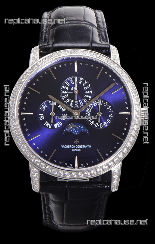 Vacheron Constantin Patrimony Perpetual Calendar Ultra-Thin White Gold Blue Dial Swiss Replica